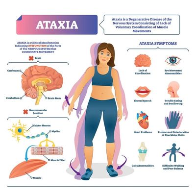 Ataxia can make dressing, washing, and personal care more difficult due to problems with balance, coordination, hand control, fatigue, and slowed movement.